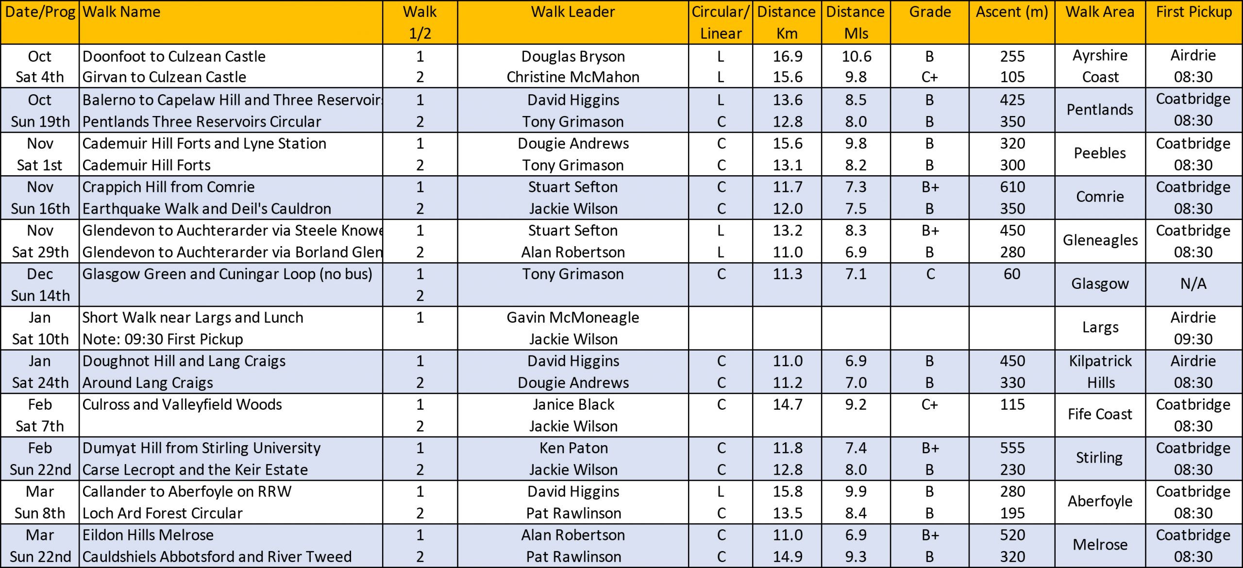 Note to Leaders: it would be helpful if leaders of joint walks could do their reccies at the same time as this would assist with determining the timing of the two walks and would also save on reccie expenses.